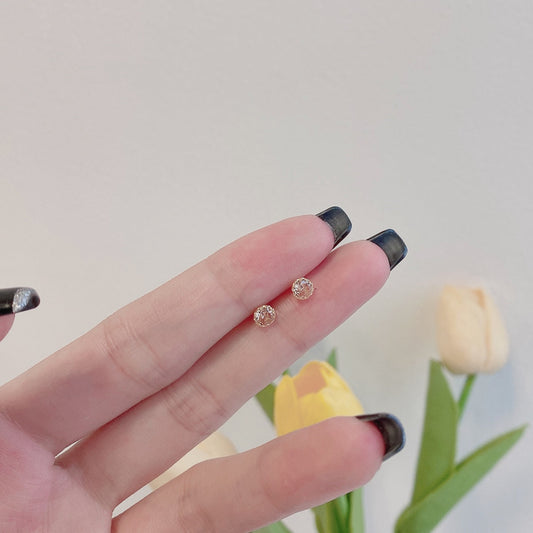 [Elowen Jewels ]Stylish Shiny Round Center Stone Stud Earrings